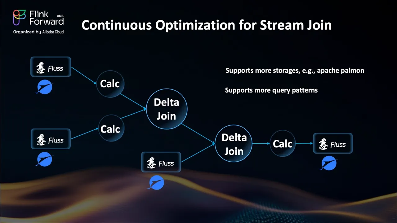 Join 性能始终是流式计算的核心课题。Delta Join 已通过解耦了 Flink Task 与本地状态的强绑定,有效解决了大数据量 Join 的扩展性难题。未来,我们将进一步支持更多存储引擎(如 Apache Paimon),以实现近实时 Delta Join。同时,我们也在增强对复杂多流 Join 的支持,包括: