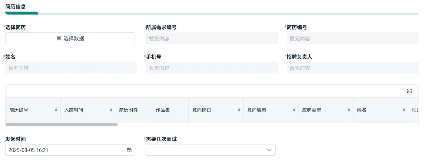 - 流程跟踪:每一条招聘需求在各环节的状态时间轴。