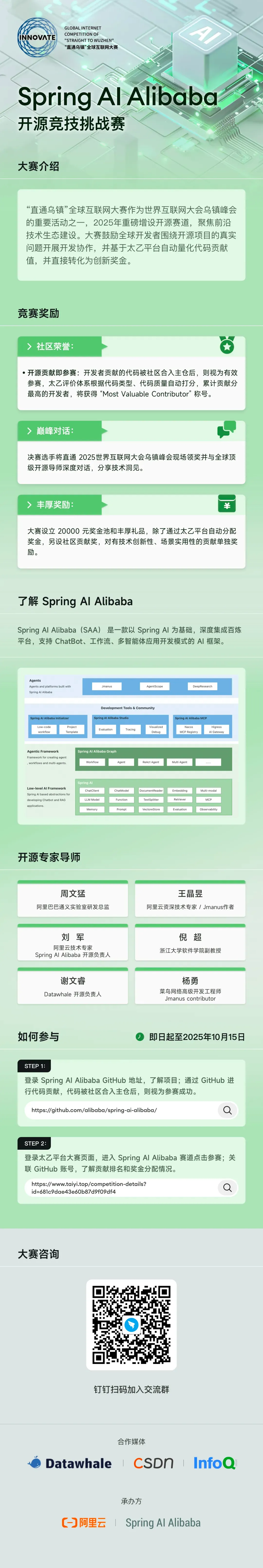 “直通乌镇”全球互联网大赛作为世界互联网大会乌镇峰会的重要活动之一,2025 年重磅增设开源赛道,聚焦前沿技术生态建设。大赛鼓励全球开发者围绕开源项目的真实问题开展开发协作,并基于太乙平台自动量化代码贡献值,并直接转化为创新奖金。