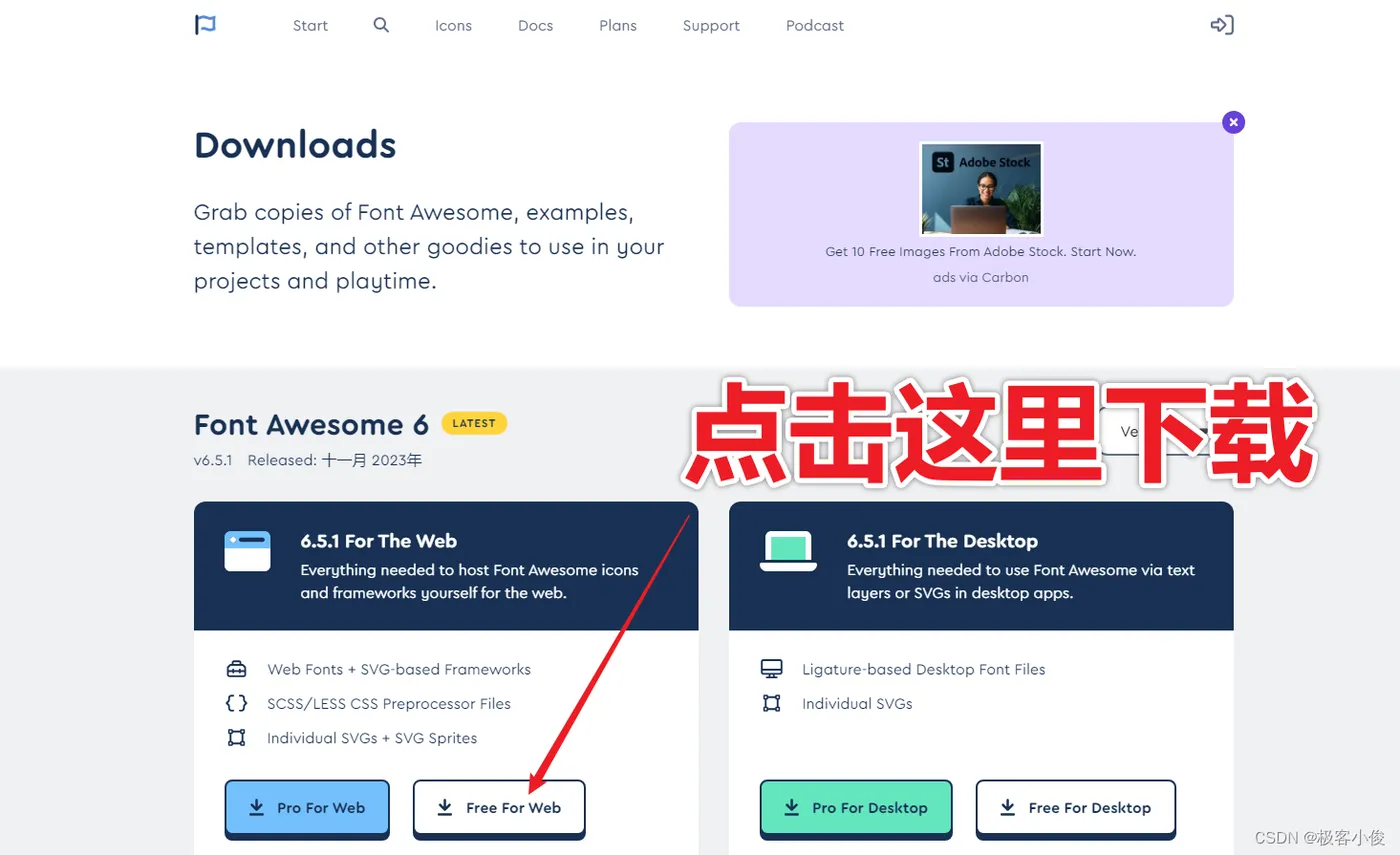 进入到下载页面,这里我们就直接选择Free for web(免费网页开发版)下载最新的6.5.1版本