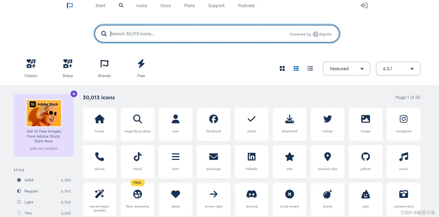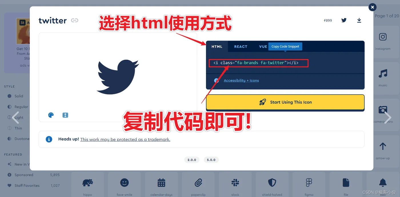 比如我们现在到: https://fontawesome.com/search 这里去随便找一个图标字体