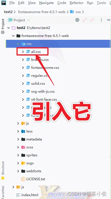 你可以将这整个fontawesome-free-6.5.1-web目录拷贝到你的项目文件夹下