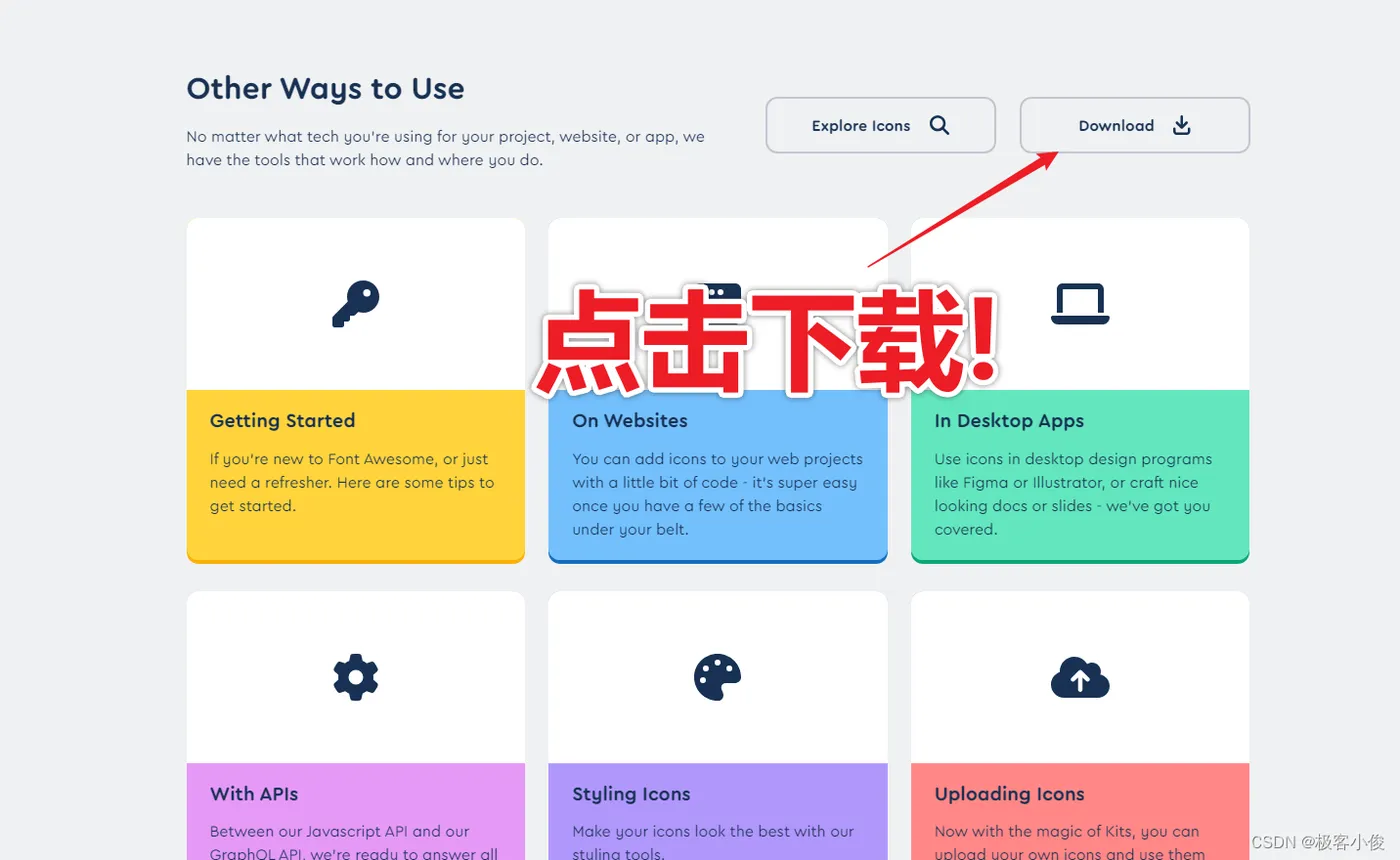 Font Awesome也可以根据需要去结合vue.js、React.js、WordPress等框架系统之中,具体大家可以参考文档,上面都有详细的说明,这里就不过多赘述了!