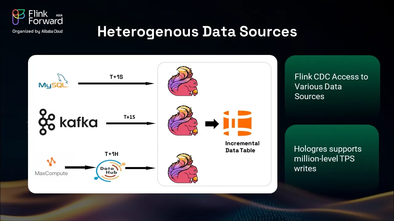 通过 Hologres 处理多样化上游系统的能力,对外部数据源的支持也得到了极大增强。无论数据来自阿里巴巴内部系统还是外部卖家平台,我们的统一平台都能高效地处理和整合信息。