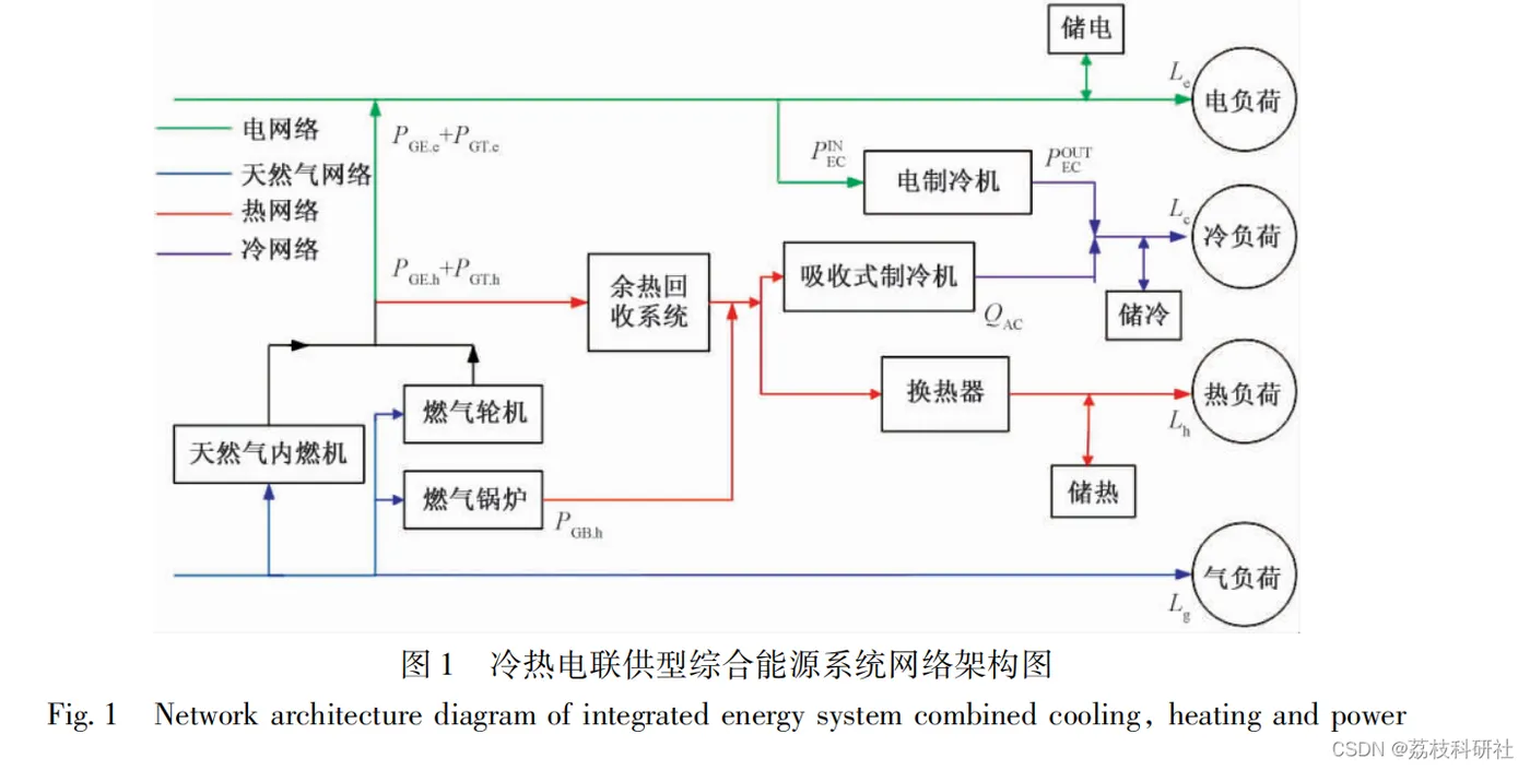 冷热电联供型综合能源系统是最常用的区域综合能源系统,其网络架构如图 1 所示。