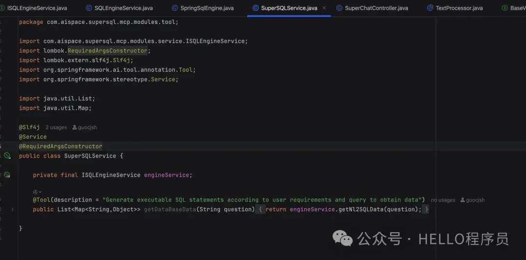 @Tool 是 Spring AI MCP 框架中用于快速暴露业务能力为 AI 工具的核心注解,该注解实现 Java 方法与 MCP 协议工具的自动映射,并且可以通过注解的属性 description,帮助人工智能模型根据用户输入的信息决定是否调用这些工具,并返回相应的结果。