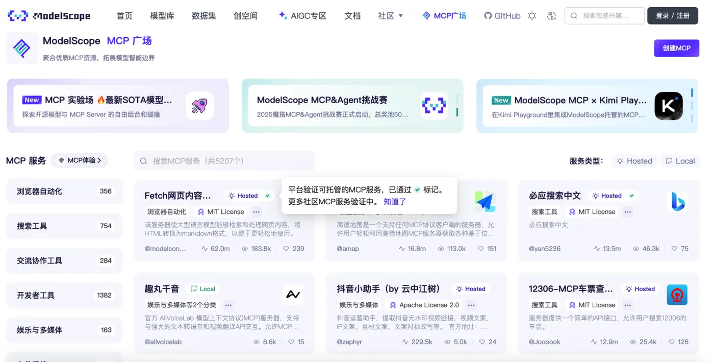 开发完成的mcp你可以上传到modelscope的MCP广场,让更多的人关注到你的mcp或者higress的MCP广场