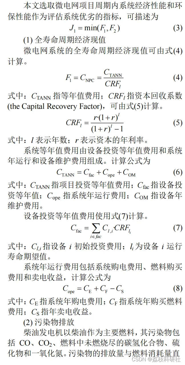 - 目标函数:以系统全生命周期成本最小化为核心,包括: