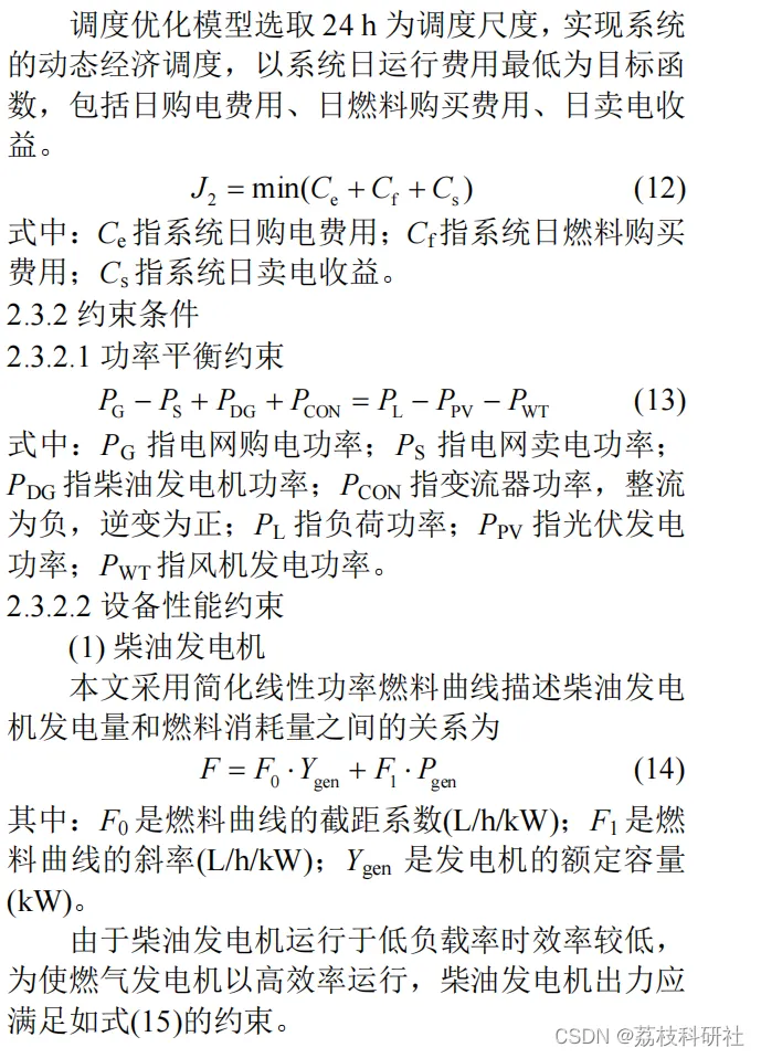 - 设备级:柴油机最小启停时间、储能充放电深度。