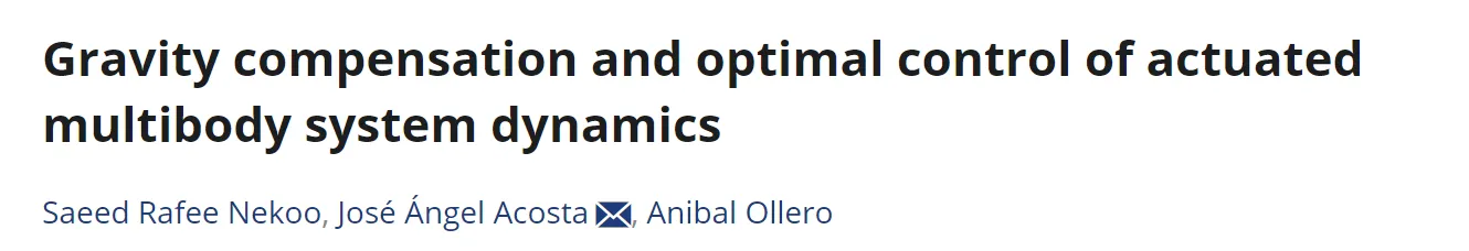 一方面,由于空间限制、系统总重量的增加、设计的成本效益等原因,并非总是可能通过机械机制来补偿重力。另一方面,有些系统需要重力补偿,例如无人机(UAVs)、直升机、自主水下航行器(AUVs)等。对于这类系统,重力无法通过机械方式补偿;它需要额外的推力、力量或输入信号。因此,在这里研究了重力补偿,作为最佳输入法则中的一个控制观点。比例微分(PD)控制是独立控制执行器的一个成熟方法,是一种非基于模型的方法。该结构也很简单,恒定的控制增益负责调整所讨论的系统。对于受到重力影响的系统(如空间机械手),应用 PD 需要较高的增益来实现调节或轨迹追踪 [10]。传统的非线性方法 PD 加重力是解决这个问题的好方法,避免了高增益的选择 [11]。滑模控制(SMC) [12] 和反馈线性化(FL) [13, 14] 是带有重力补偿机制的非线性控制器,自然地嵌入在控制律中;尽管特定的方法也被引入来研究这个课题。De Luca 和 Panzieri 提出了一个迭代方案,为柔性连杆机械手补偿重力[15]。学习部分为建模不精确且末端执行器上的负载未知的情况找到了一个前馈项(用于重力补偿的信号)。相同的方法在输入饱和约束下进行了扩展 [16]。Bembli 等人在两自由度外骨骼肢体上应用了终端滑模控制,以获得在重力补偿中的鲁棒特性 [17]。