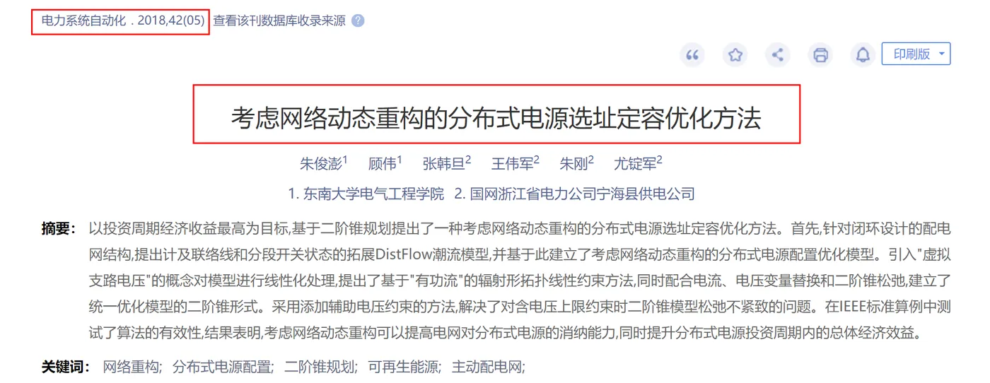 - 提出一种考虑网络动态重构的分布式电源选址定容优化方法。
