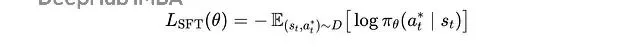 区别在于:SFT 不是从策略采样轨迹,而是从固定数据集采样;SFT 把优势函数固定为 1,也就是假设数据集里的动作都是"好的"。