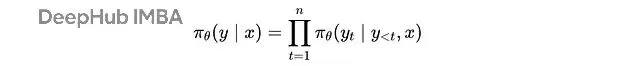 给定查询 'x' 生成输出 'y' 的联合概率是在每个时间步 't' 给定其前置上下文 (y(<t), x) 下生成每个令牌 'y(t)' 的概率的乘积。