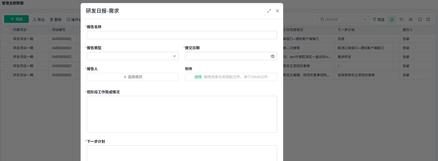 - 研发日报(关联需求):日报里能看见每条需求的进度、阻塞点、工时消耗和明天计划。