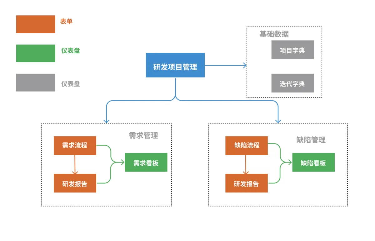 - 需求管理的功能分解(需求看板 / 需求处理流程 / 研发日报)