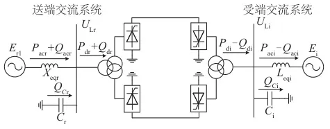 在交直流转换过程中,换流装置吸收的无功功率约为所传输的直流功率的-一半,其中逆变器吸收的无功功率更多,能达到60%左右[14-15]。在传统电压稳定性分析方法的基础上得知,若受端交流系统无功供给不足,交直流系统会发生严重的电压失稳现象,尤其是逆变站受端电网交直流混合节点。