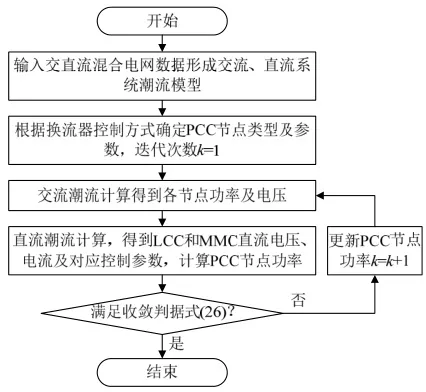 - 交替迭代法:分步求解交流与直流方程,适用于多控制策略场景。流程包括:初始化交流潮流→计算直流参数→更新PCC节点功率→迭代至收敛。