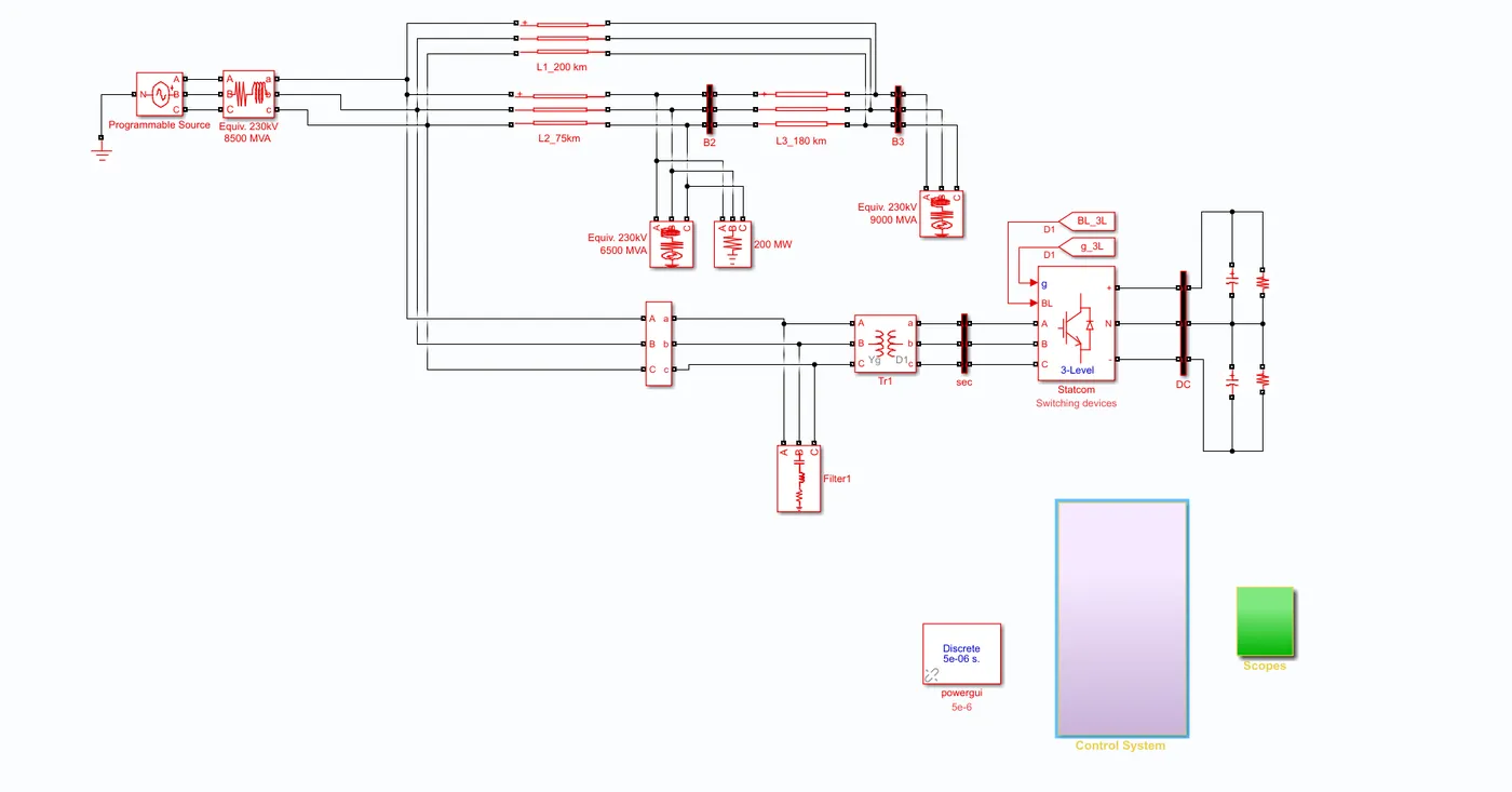 - 系统参数:标称电压230kV,短路容量500MVA,STATCOM额定容量50MVA。