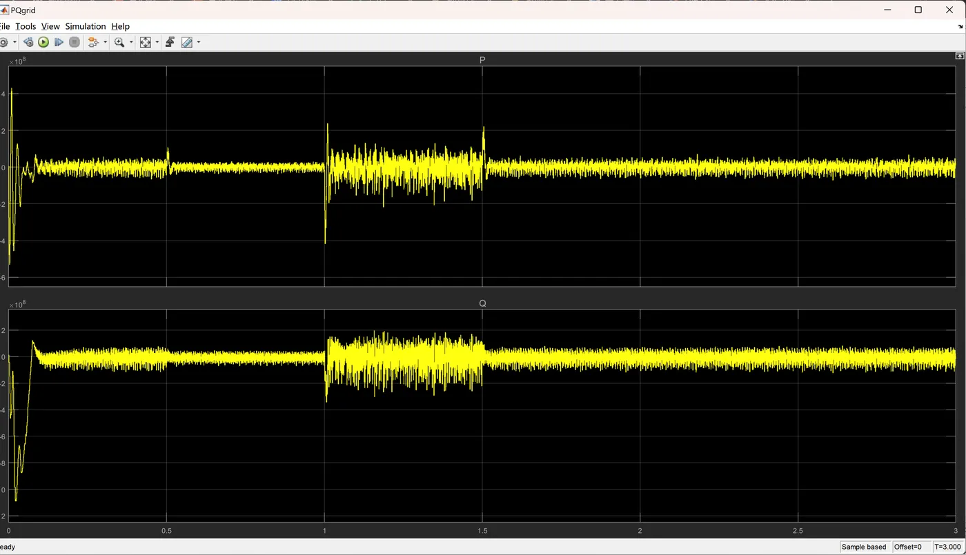 - 无功功率变化:STATCOM吸收无功功率从0Mvar增至-20Mvar,动态调节范围宽。