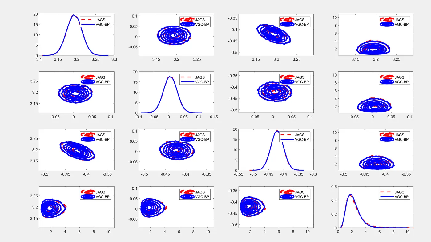 本文提出了一个统一的变分Copula推断框架。在VGC中,我们着重于高斯Copula族以简化问题,然而,其他更灵活的形式,如高斯混合Copula,也可以考虑进来。为了避免为隐藏变量指定边缘的困难,基于Bernstein多项式的非参数程序间接地引入了高度灵活的单变量边缘。Tran等人和Kucukelbir等人可能会从我们的灵活边缘中受益,而我们的方法可能会从藤Copula分解中受益,以允许更丰富或更复杂的依赖关系,并应用于Kucukelbir等人中的自动微分技术。