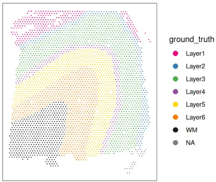 plotCoords(spe, annotate = "ground_truth", pal = "libd_layer_colors")