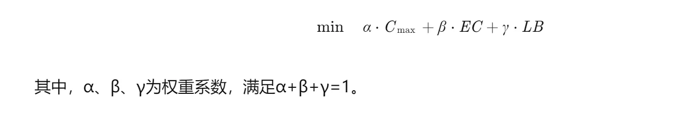 - 动态权重调整:根据进化代数动态调整α、β、γ,早期侧重Cmax,后期平衡EC与LB。