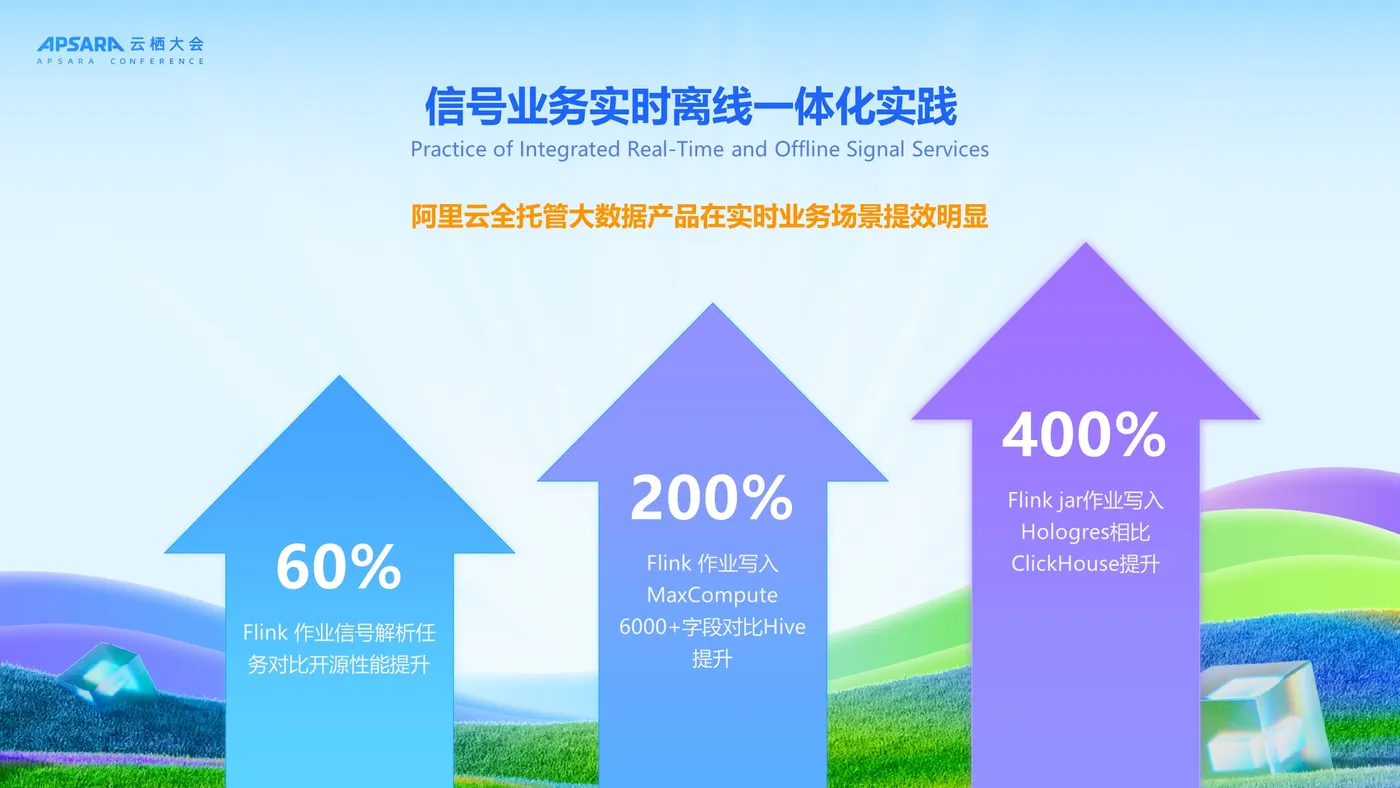 其次是架构升级。将开源Flink替换为云上全托管Flink,底层采用Flash向量化引擎进一步提升性能。ClickHouse替换为Hologres后,在分布式计算、多表join及高QPS场景下优势明显,能够支撑更多应用场景。Hive与Spark替换为MaxCompute后,6000字段以上的大宽表查询及写入性能实现翻倍提升。