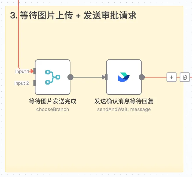 2、模块 2:等待图片发送 + 发送审批请求(黄色区域)