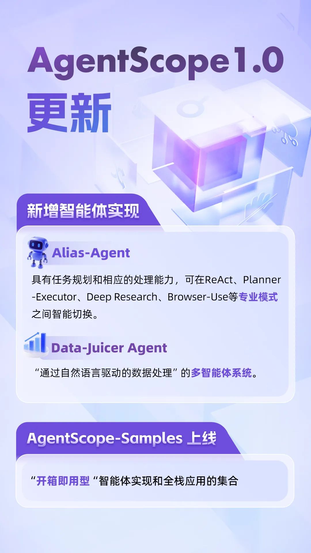 非常感谢大家一直以来对 AgentScope 项目的支持,在 AgentScope1.0 版本发布两个月后的今天,我们增加了一些更新内容,和各位分享。