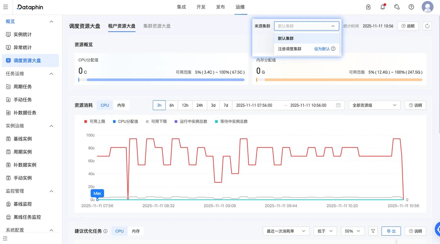 - 支持在运维页面查看“注册调度集群”的资源消耗,同时支持将其设置为默认展示集群。