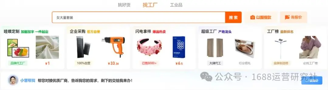 1. 内容化转型:从“货架”到“内容场”,领先的商家已经不再将1688店铺视为简单的产品陈列柜,而是通过找工厂将店铺升级为行业知识和解决方案的系统平台。通过打造定制型匹配场景,建立专业信任,吸引精准流量。一位在工业设备领域取得突破的商友分享:“我们每月重点深耕定制流量,半年内店铺停留时长提升了3倍,转化率提高40%。”