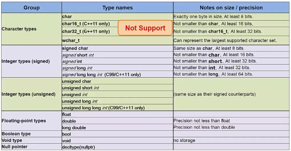 其中要说明的是,Vitis HLS不支持“char16_t”以及“char32_t”这两种数据类型。
