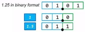 由于1.25对应的二进制形式为0101(蓝色为整数部分,绿色为小数部分),但ap_[u]fixed<3,2>的定义相当于取了1.25的2bit整数部分,1bit的小数部分,即最终数据为010,即代表数据1。