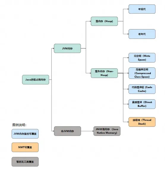 3. 工具链覆盖盲区:传统 Java 内存分析工具无法覆盖 JNI 内存、LIBC 内存等非 JVM 内存区域。