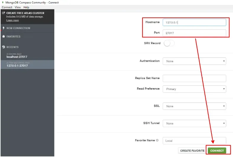 2.3 Compass-图形化界面客户端到MongoDB官网下载MongoDB Compass, 地址:链接如果是下载安装版,则按照步骤安装;如果是下载加压缩版,直接解压,执行里面的 MongoDBCompassCommunity.exe 文件即可。 在打开的界面中,输入主机地址、端口等相关信息,点击连接: