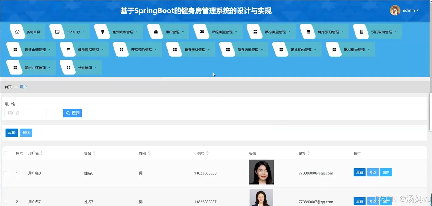 随着全民健身意识的提升和体育产业的蓬勃发展,健身房行业迎来了快速增长。传统健身房管理仍依赖人工登记、纸质记录或简单的电子表格,导致会员信息混乱、课程预约效率低下、财务统计不精准等问题日益突出。尤其在会员规模扩大后,人工管理模式难以应对复杂的业务需求,如私教课程安排、会员卡到期提醒、设备维护管理等,不仅增加了运营成本,还影响了用户体验。数字化技术的普及使得智能化管理系统成为行业趋势,许多健身房开始寻求信息化解决方案以提高管理效率和服务质量。基于Java和Spring Boot的健身房管理系统应运而生,旨在利用现代软件开发技术优化传统管理模式。Java语言凭借其稳定性、跨平台性和丰富的生态系统,成为企业级应用开发的首选;Spring Boot框架则简化了项目配置,提高了开发效率,使得系统能够快速迭代并适应业务变化。结合MySQL数据库的高效数据存储和事务管理能力,该系统能够实现会员信息精准管理、课程智能排期、财务数据自动化统计等功能,为健身房提供一体化运营支持。通过引入信息化管理手段,不仅能减少人工操作错误,还能提升会员体验,增强健身房的市场竞争力,推动行业向智能化、标准化方向发展。