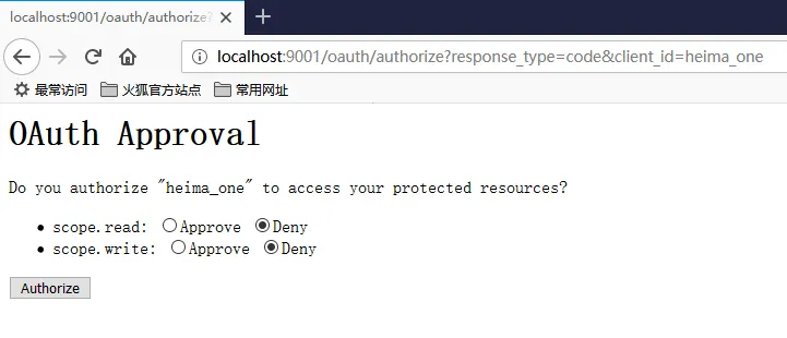 http://localhost:9001/oauth/authorize?response_type=code&client_id=heima_one