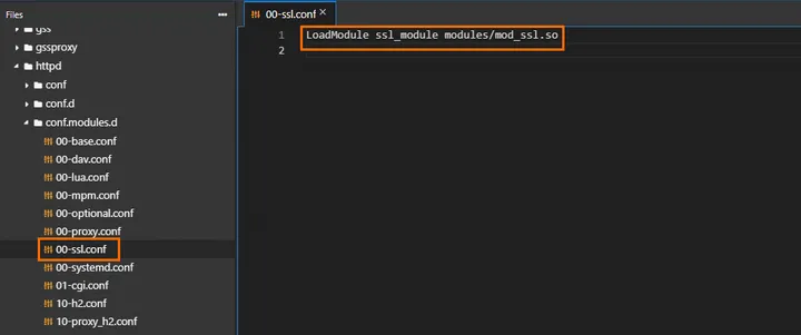 找到/etc/httpd/conf.modules.d/00-ssl.conf文件,修改LoadModule ssl_module modules/mod_ssl.so配置项,若前面有#号,需移除以取消注释,修改后保存文件。