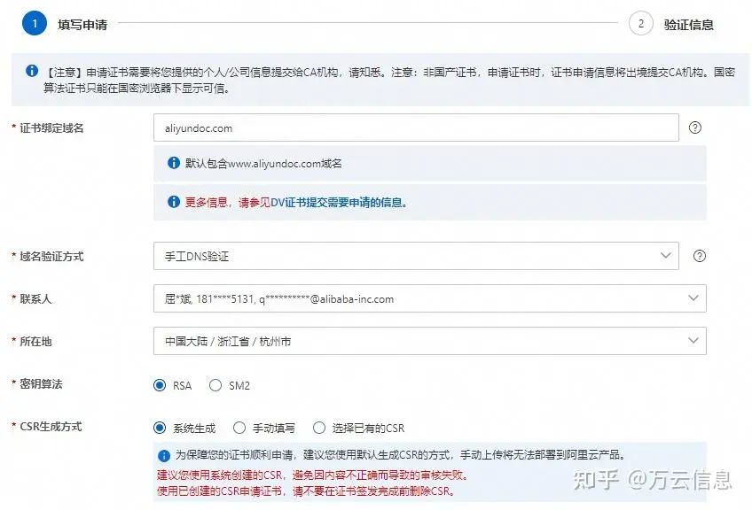 DV证书申请信息