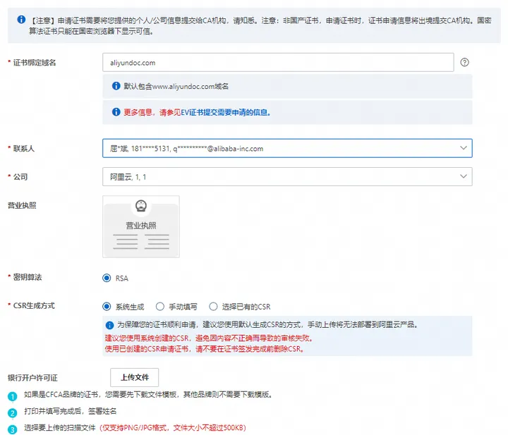 EV证书申请信息