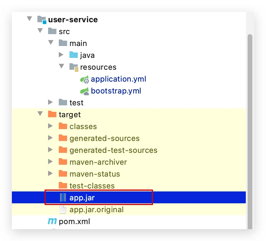 接下来需要将我们的每个微服务都打包。因为之前查看到Dockerfile中的jar包名称都是app.jar,因此我们的每个微服务都需要用这个名称。
