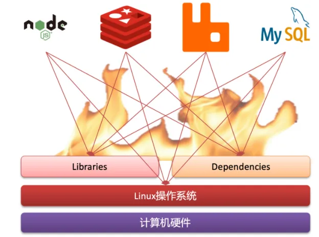 这样的版本一致保证会耗费我们大量的时间和精力,同时万一有问题产生,我们也很难第一时间考虑到是因为版本不一致导致的问题。因此我们需要一套可以平滑切换的部署引擎,这就是本节我们学习的Docker。