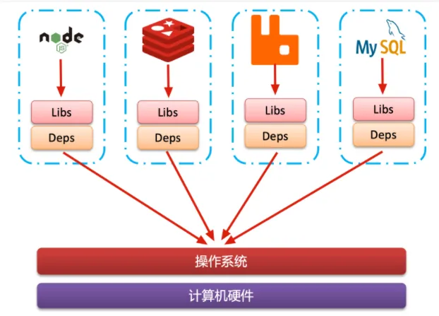 - 【依赖打包】将应用的Libs(函数库)、Deps(依赖)、配置与应用一起打包