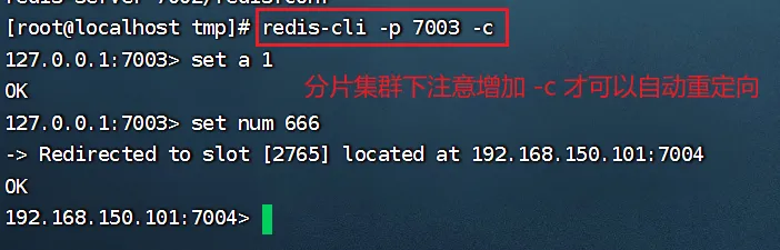 到了7003后,执行get num时,对num做hash运算,对16384取余,得到的结果是2765,因此需要切换到7001节点【即:不止存储会做插槽计算和重定向,查询也会做】