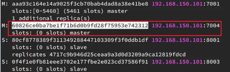 新的问题来了:哪个node来接收这些插槽??显然是7004,那么7004节点的id是多少呢?