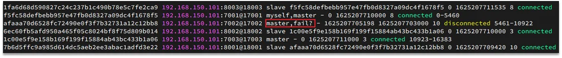 其中7001、7002、7003都是master,我们计划让7002宕机。