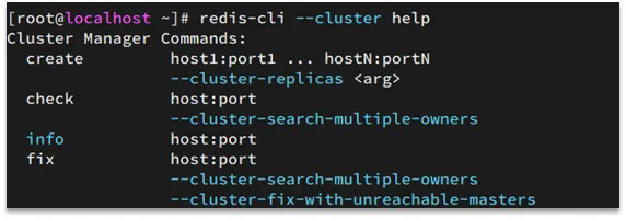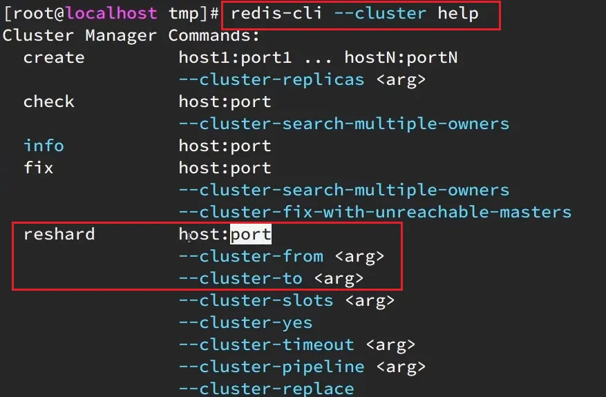 redis-cli --cluster提供了很多操作集群的命令,可以通过下面方式查看: