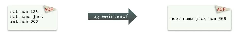 如图,AOF原本有三个命令,但是set num 123 和 set num 666都是对num的操作,第二次会覆盖第一次的值,因此第一个命令记录下来没有意义。