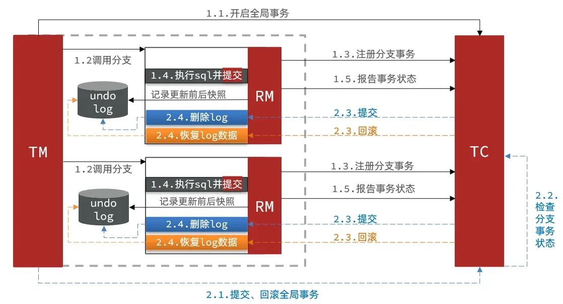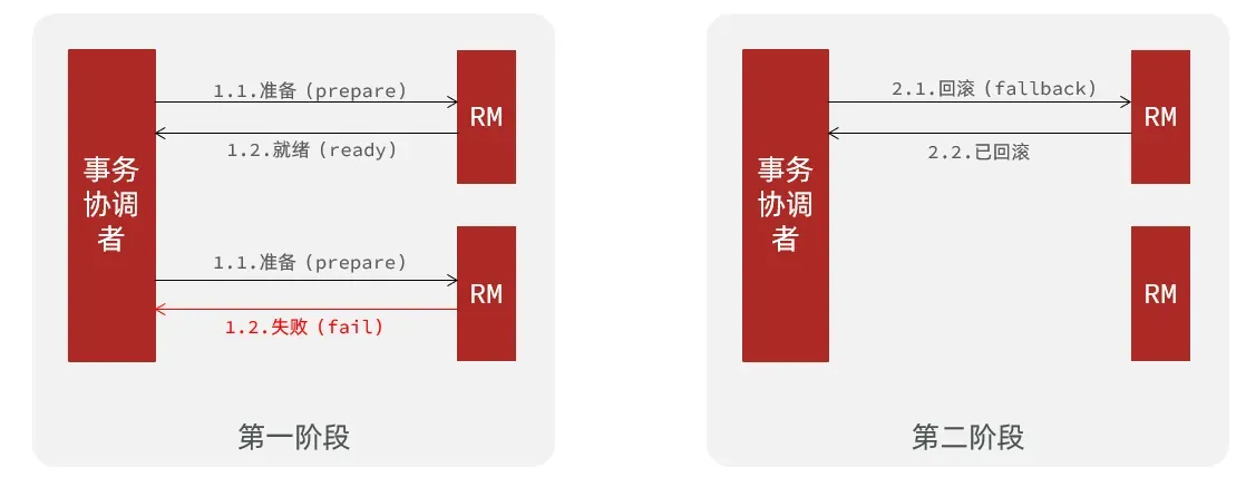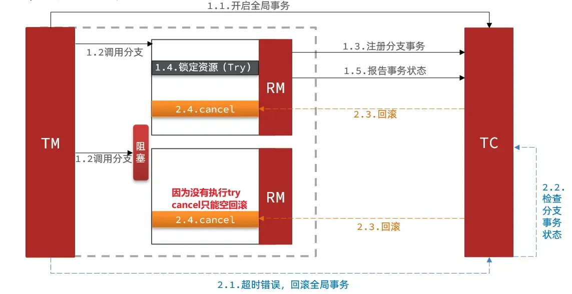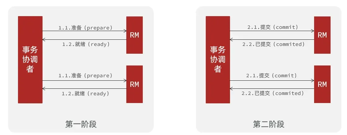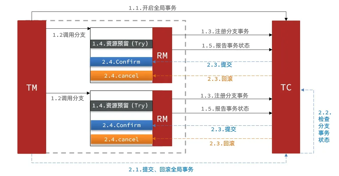 二阶段:成功则什么都不做;失败则通过编写补偿业务来回滚