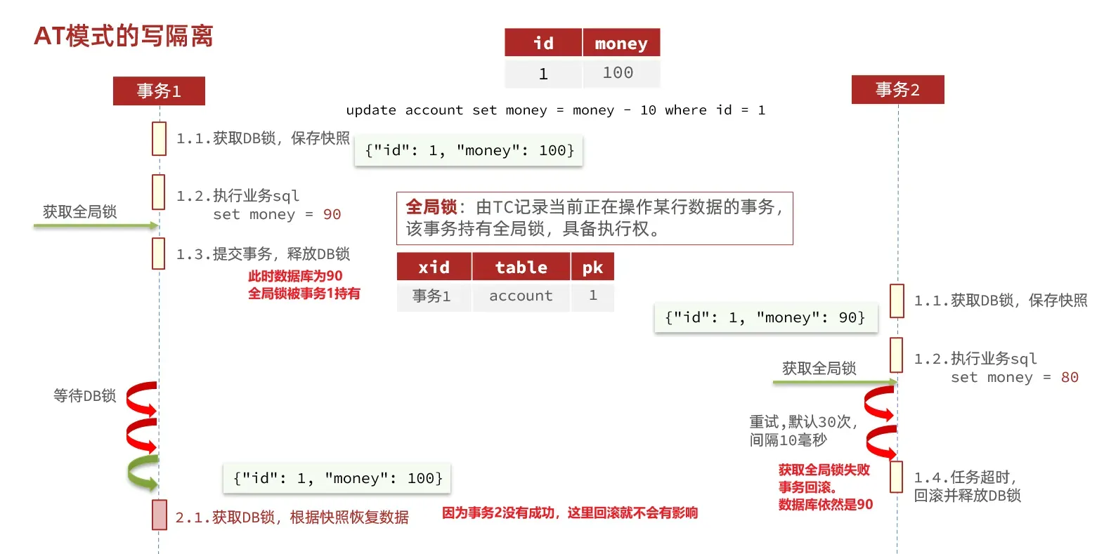 订单的创建、库存的扣减、账户扣款在每一个服务和数据库内是一个本地事务,可以保证ACID原则。